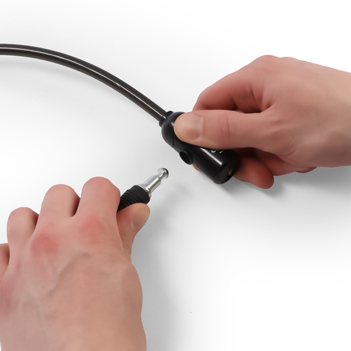 - Трос 650 мм: Длина охватывает раму и стойку велопарковки. Диаметр 8 мм обеспечивает баланс между прочностью и удобством переноски.