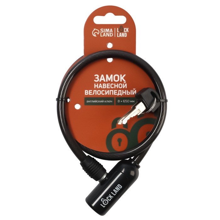 Замок навесной велосипедный LOCKLAND, 8×650 мм, английский ключ