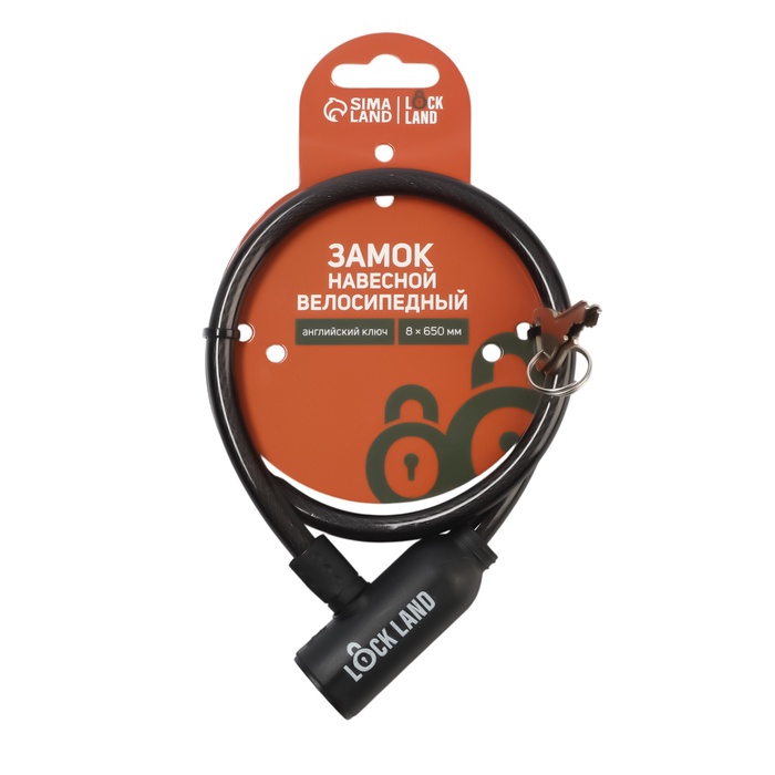 Замок навесной велосипедный LOCKLAND, 8×650 мм, английский ключ