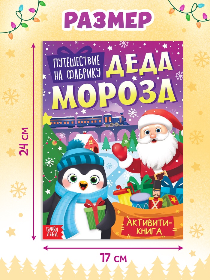 «Путешествие на фабрику Деда Мороза» — это увлекательная игра-книга для детей от 3 лет, которая перенесёт их в волшебный мир новогодних приключений. На 28 страницах малышей ждёт сказочное путешествие, где они познакомятся с героями, узнают тайны мастерской Деда Мороза и почувствуют атмосферу праздника.