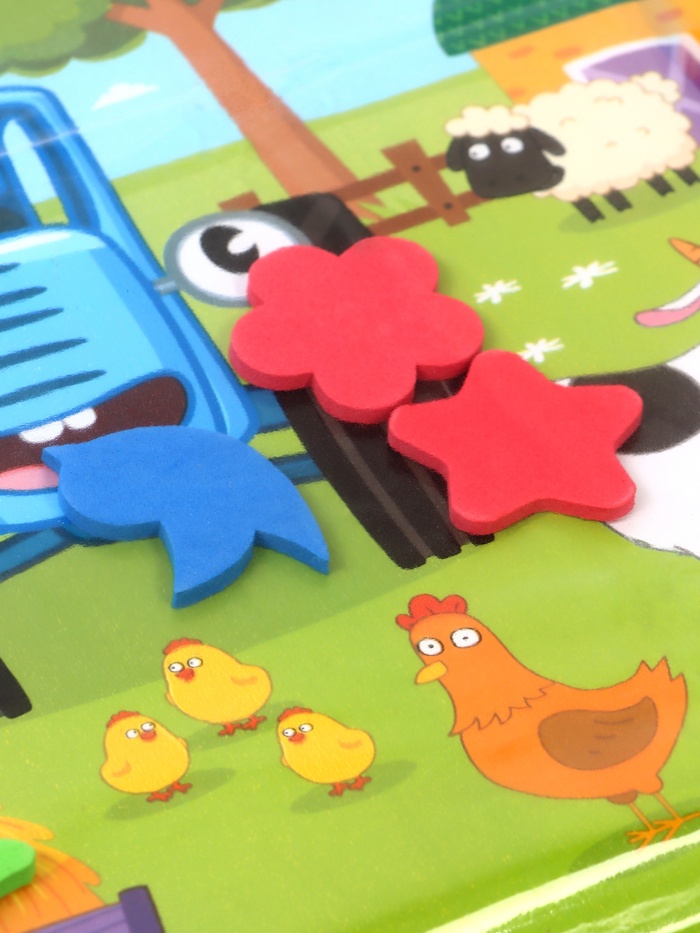 - Внутри коврика находятся мягкие фигурки из EVA-материала.
