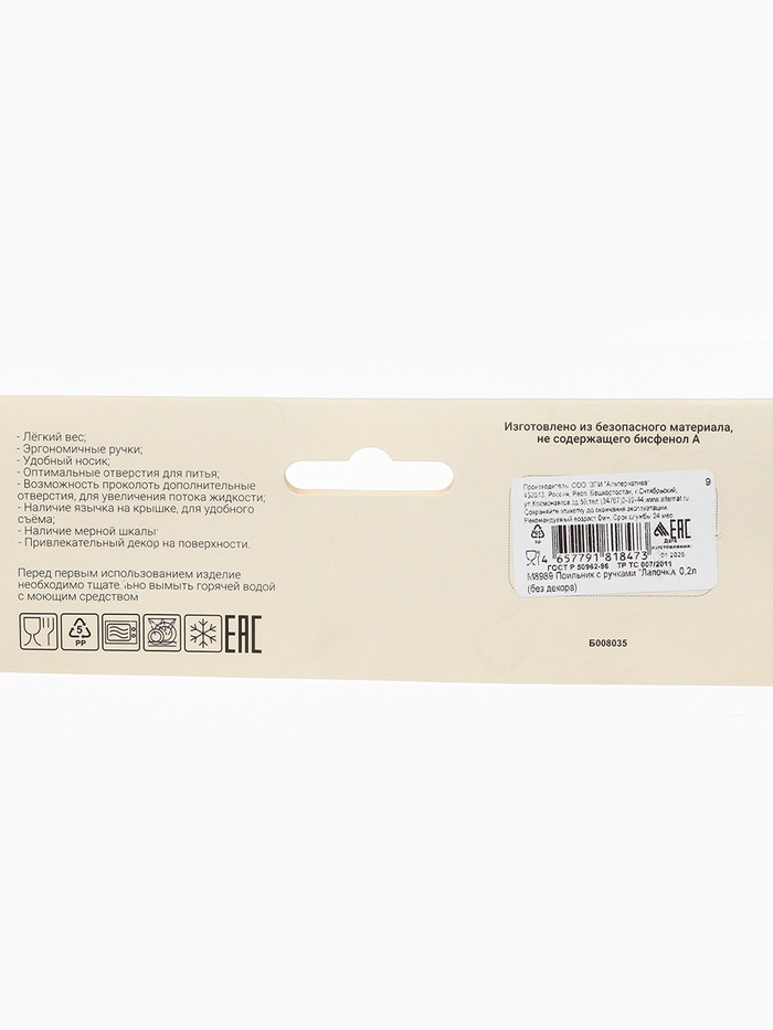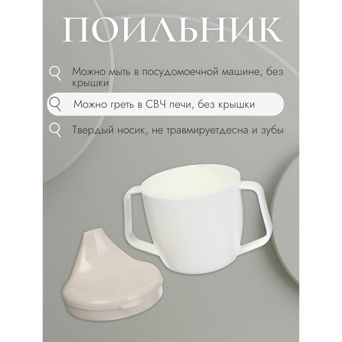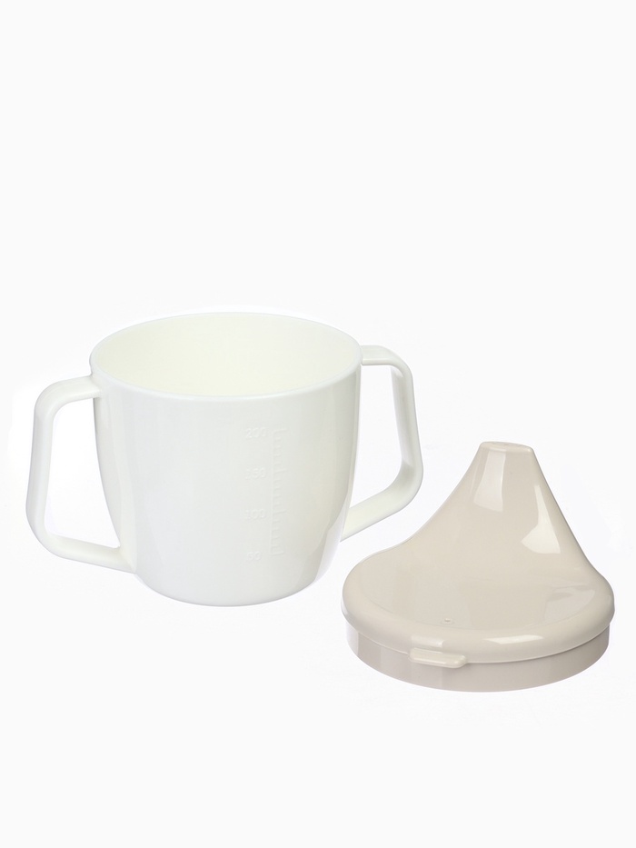 Поильник с ручками, белый/ бежевый