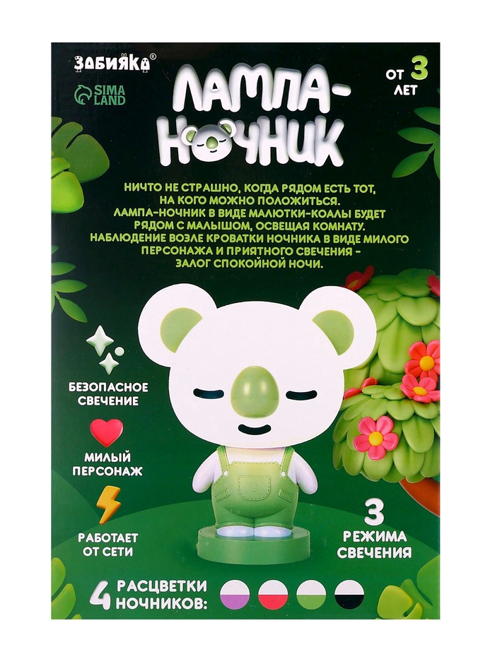 Лампа-ночник «Коала» станет уютным дополнением детской комнаты. Мягкий свет создаёт атмосферу уюта и спокойствия, помогая малышу быстрее засыпать. Лампа работает от сети, а значит, не требует постоянной смены батареек.