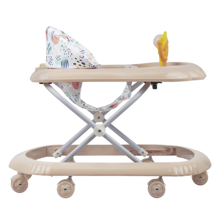 Данная модель имеет устойчивое основание на сдвоенных колёсиках. Широкий бампер защитит непоседу от столкновений с мебелью или другими предметами в квартире. Высота конструкции регулируется. Чехол выполнен из практичной ткани, его можно снять для чистки или стирки. Для удобства хранения и транспортировки устройство складывается.