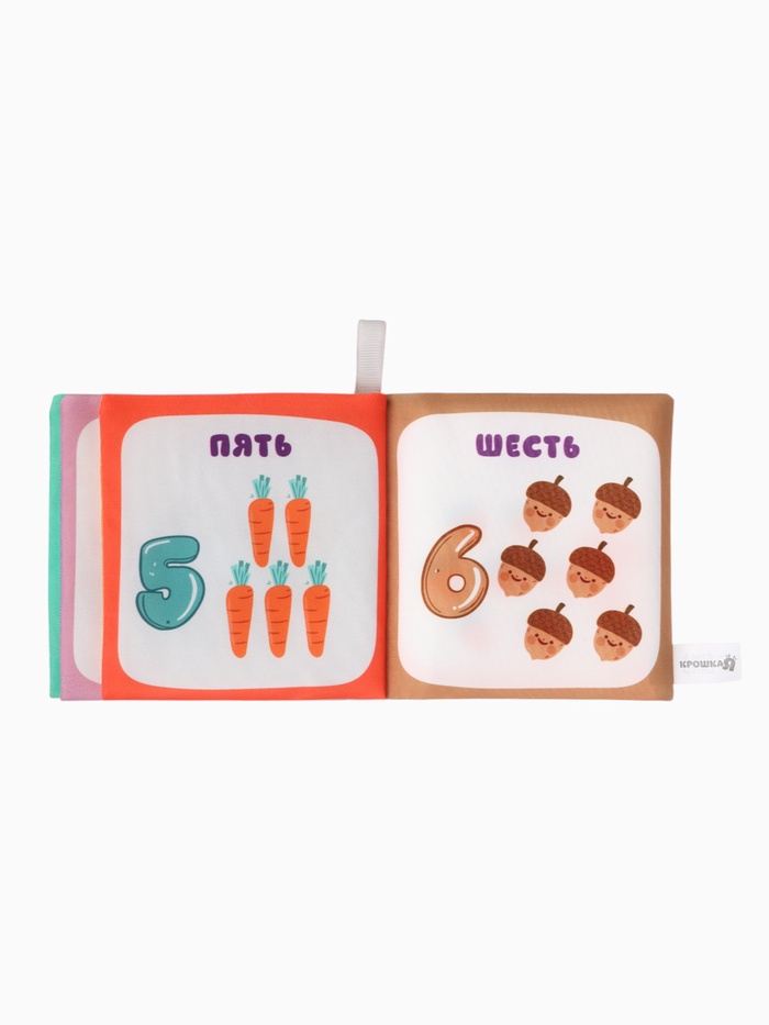 - Книжка выполнена из мягкого текстиля с шуршащими элементами для тактильного и звукового развлечения.