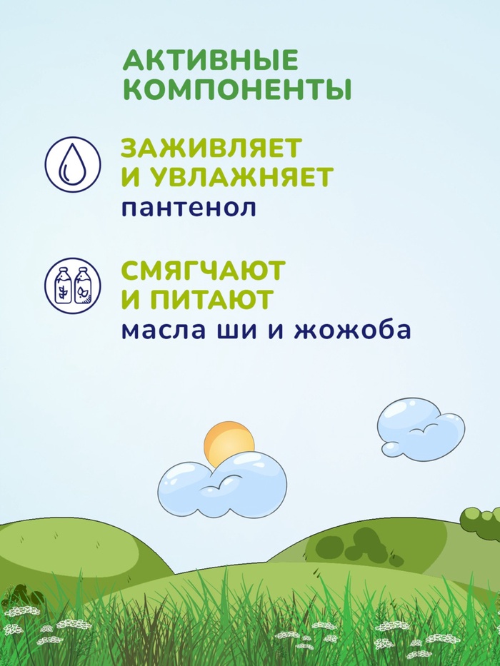 Нанесите 1–2 нажатия пенки на ладонь или прямо на влажную кожу головы малыша. Массирующими движениями распределите по волосам и коже головы. Аккуратно смойте тёплой водой. Используйте при каждом купании или по мере необходимости.