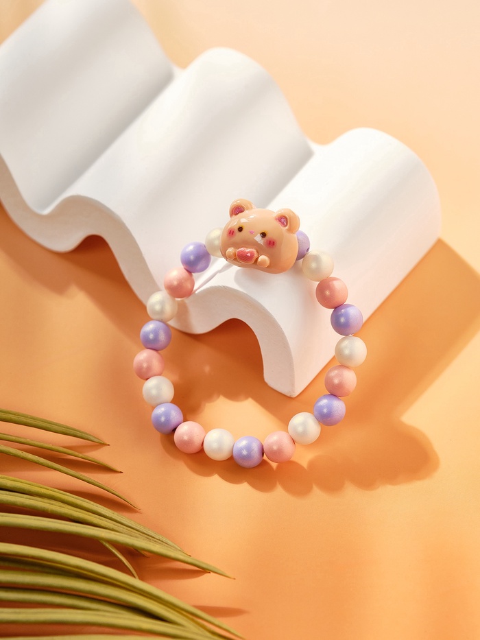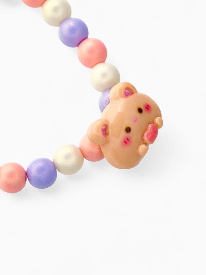 Яркий детский браслет с изображением милого медвежонка создаст настроение радости и веселья для каждой девочки. Диаметр 6 см идеально подходит для детской руки, а разноцветные бусины из пластика с жемчужным блеском придают украшению игривость и привлекательность.