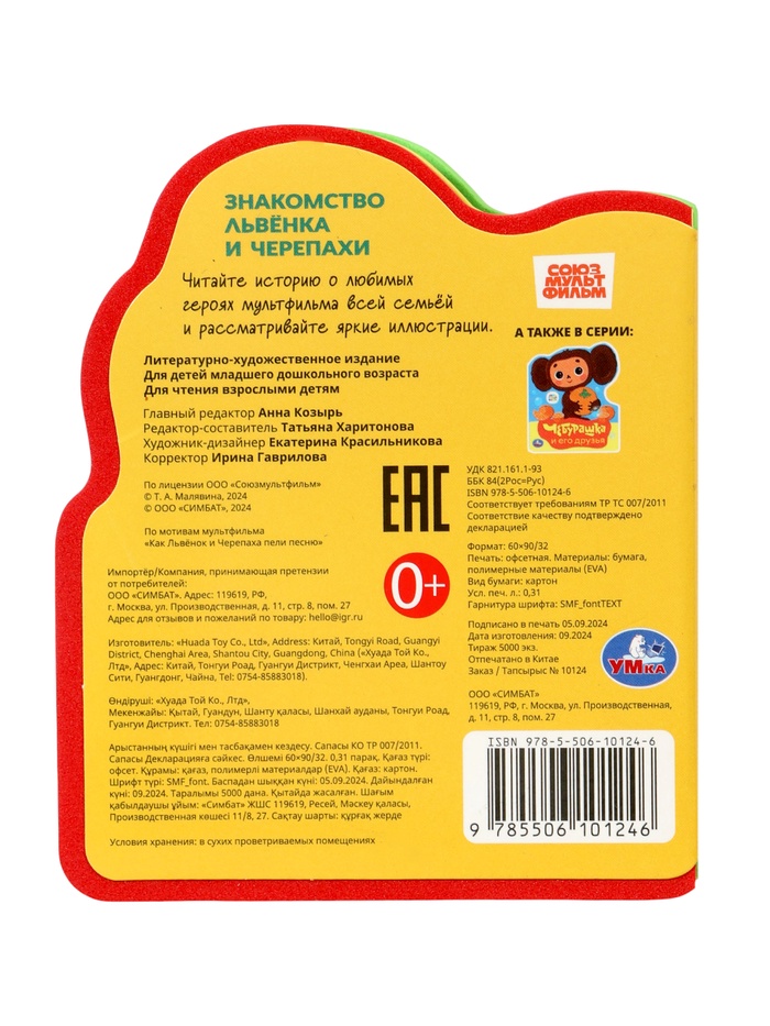 Книга EVA с фигурной вырубкой «Львёнок и Черепаха. Союзмультфильм»