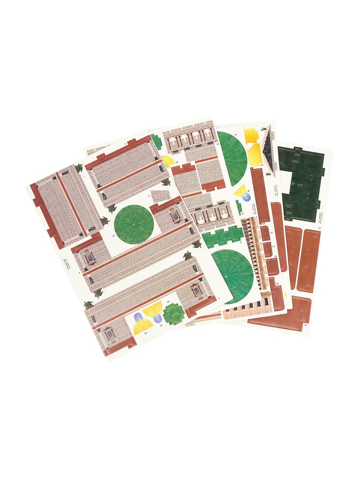 - Трёхмерная сборка: из плоских деталей получается объёмная модель Исаакиевского собора. Процесс сборки напоминает работу архитектора — нужно последовательно соединять элементы, чтобы возвести здание с куполами и колоннами.
