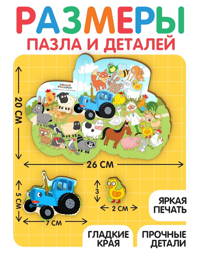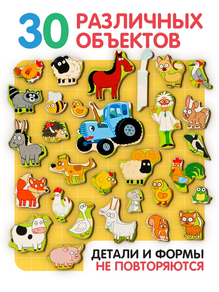 Представьте. Ваш малыш собирает синий трактор — и не просто так. Вокруг него раскрывается целый мир: коровы, курицы, лошади, овцы, утки и даже забавные зверюшки на полях. Он не просто играет — он узнаёт, кто живёт на ферме, как выглядят животные и что делают машины. А вы — получаете время для себя, зная, что ребёнок занят полезным делом.