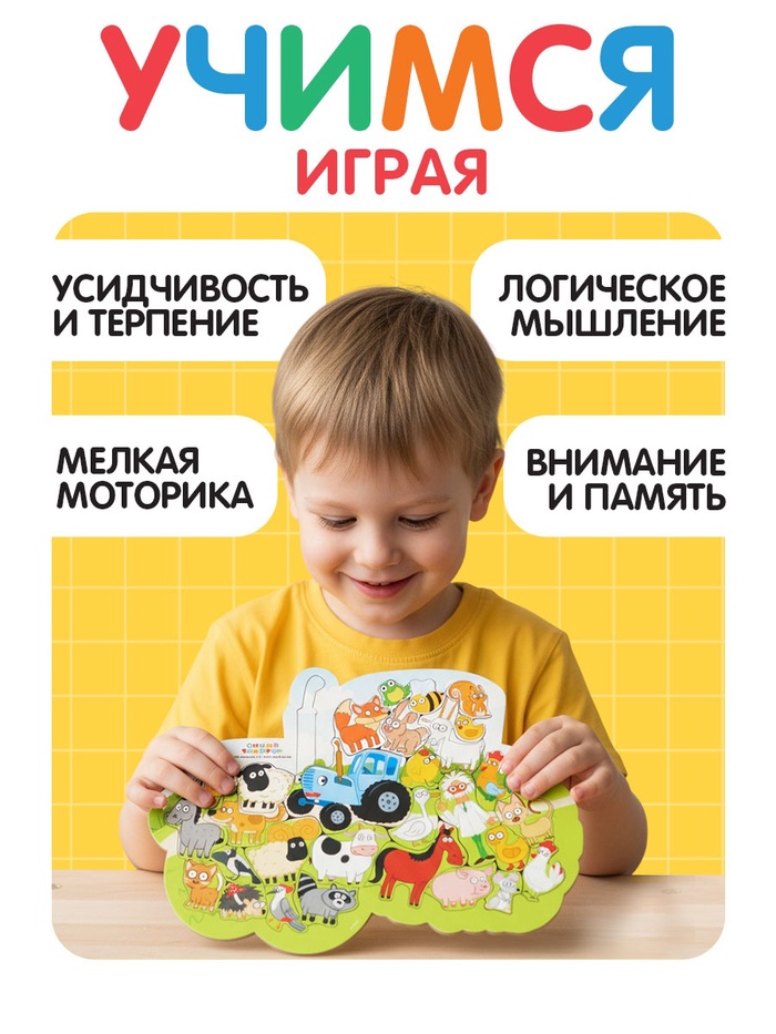 Он учится видеть, где должен быть трактор, а где — корова. Где — цыплёнок, а где — лошадь. Он начинает понимать, что всё на свете связано. А вы — радуетесь, видя, как растёт его любознательность и уверенность.