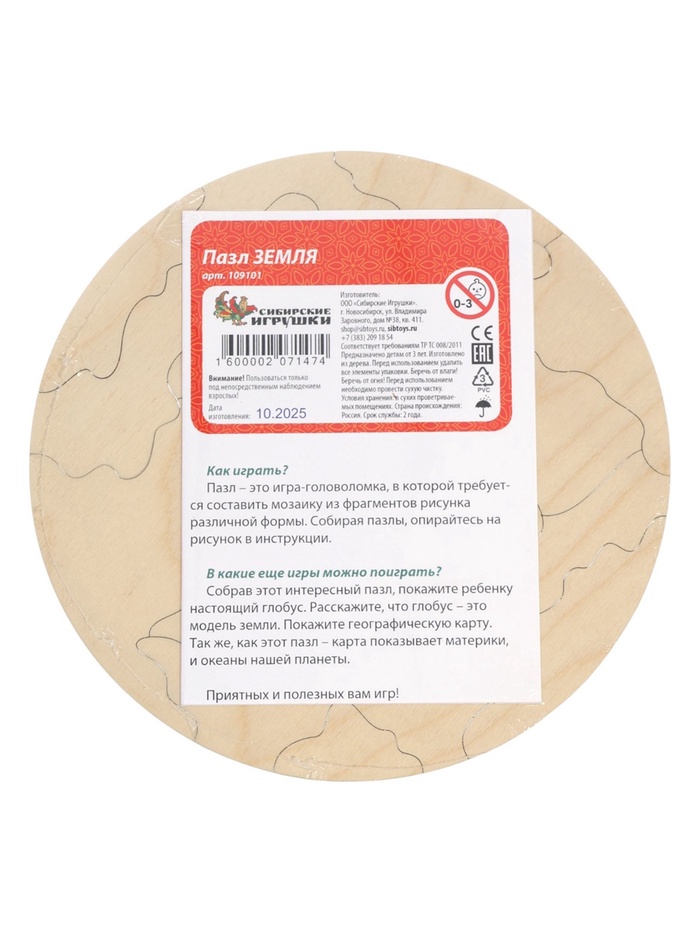 Пазл деревянный 18 эл. «Земля»