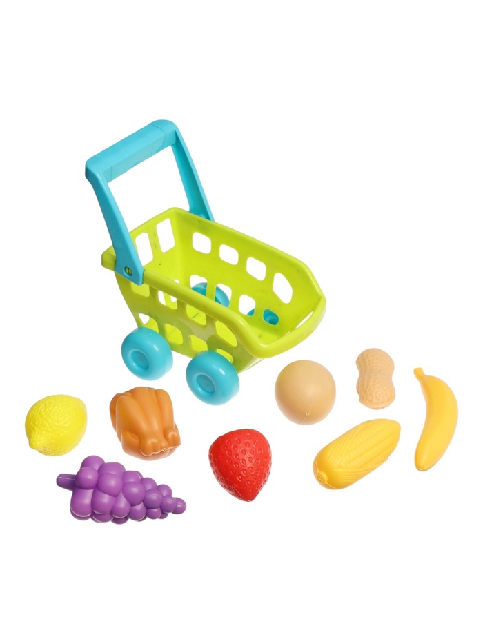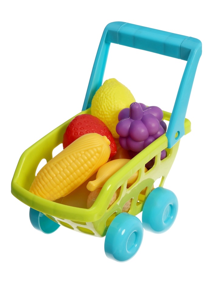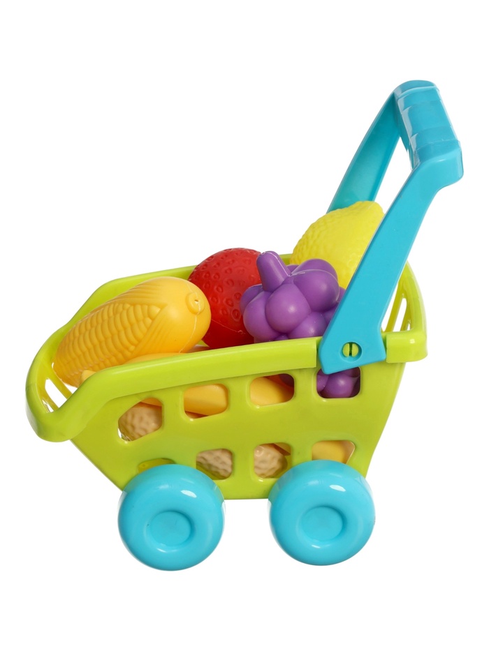 Продуктовая тележка «Магазинчик» — компактный набор для первых сюжетных игр, который помогает ребёнку попробовать себя в роли покупателя. Лёгкая тележка удобно катится по полу, а яркие овощи и фрукты внутри делают игру понятной и интересной. Малыш может «собирать покупки», перевозить продукты и придумывать свои истории, развивая воображение и самостоятельность.