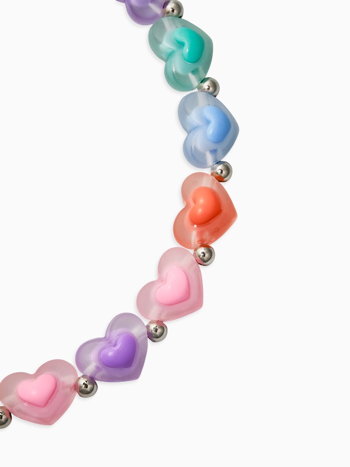 Радужные бусы «Сердце» покорят сердце любой девчонки яркой палитрой и искрящимся внешним видом. Аксессуар изготовлен из акрила и обладает мягким переливающимся эффектом, словно солнечные лучи играют на поверхности драгоценного камня. Их смело можно назвать настоящим воплощением праздника, которого ждут маленькие модницы.