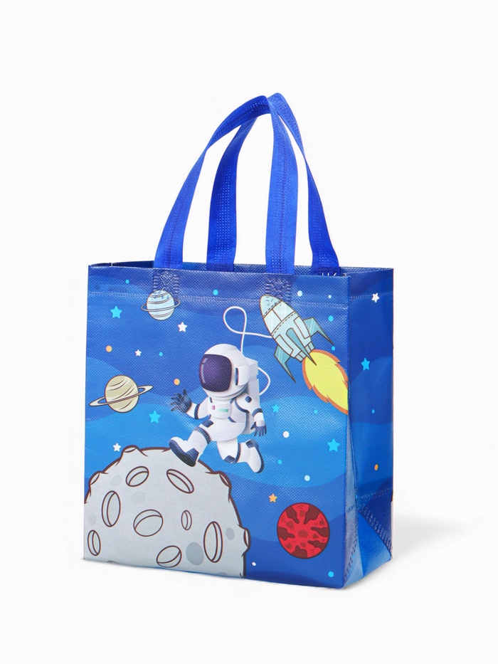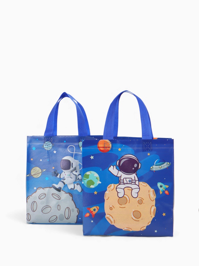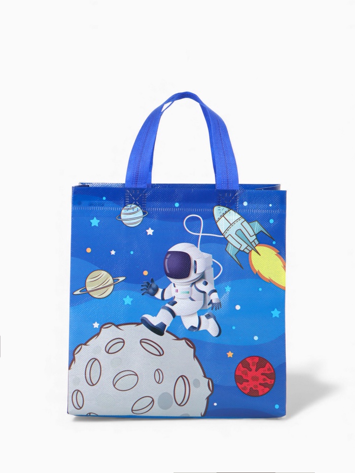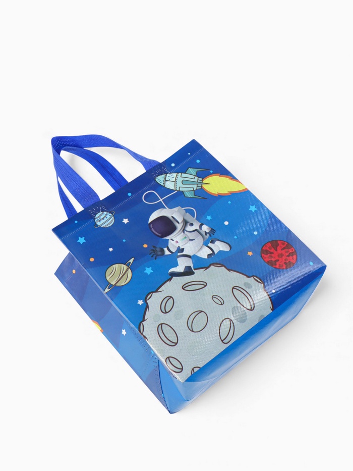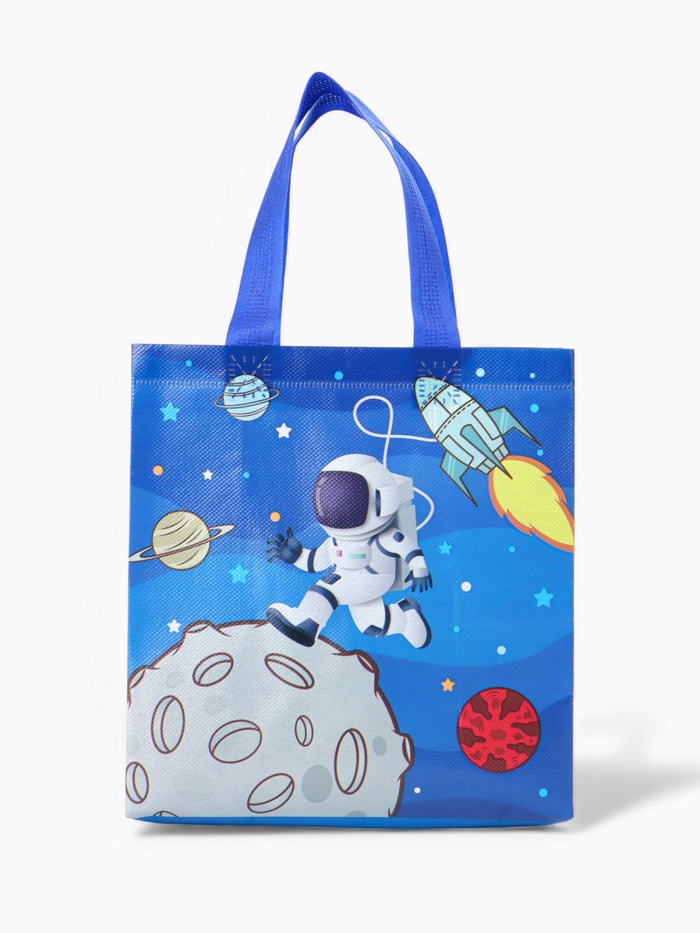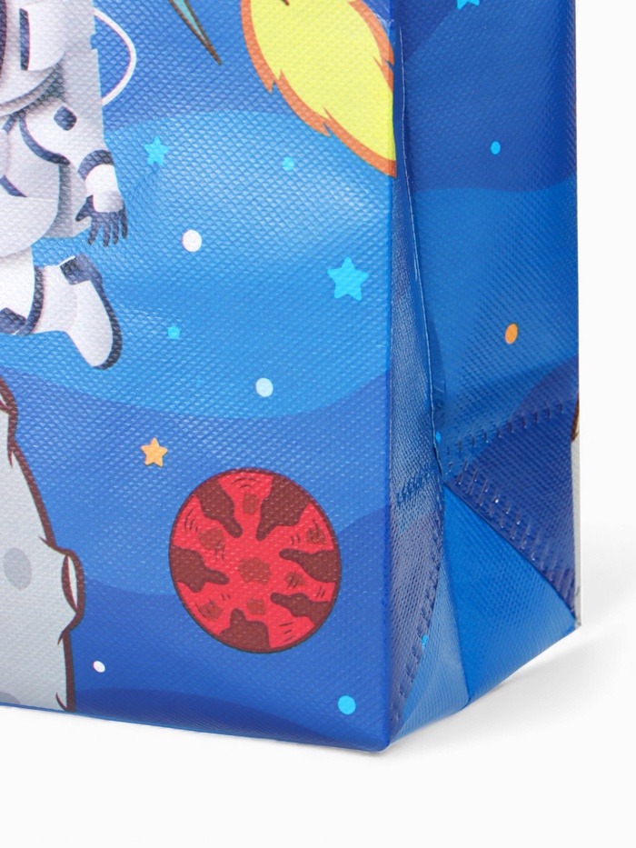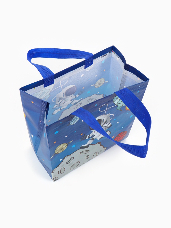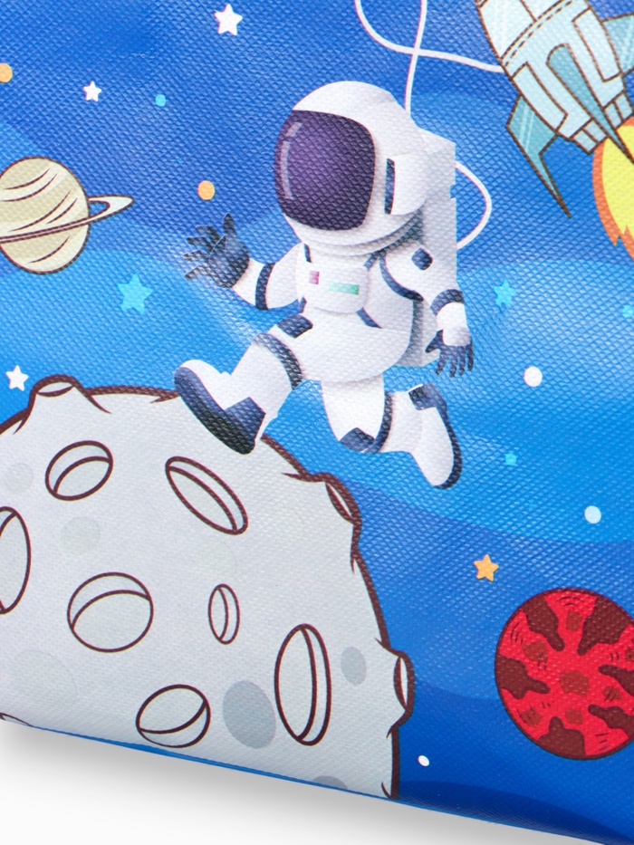 Этот космический шопер — универсальный спутник для ежедневных задач. Его дизайн с принтом звёзд и галактик превращает обычный поход в магазин или на прогулку в небольшое путешествие. Прочный материал и открытый верх делают его невероятно удобным: можно быстро положить покупки или взять всё необходимое с собой.