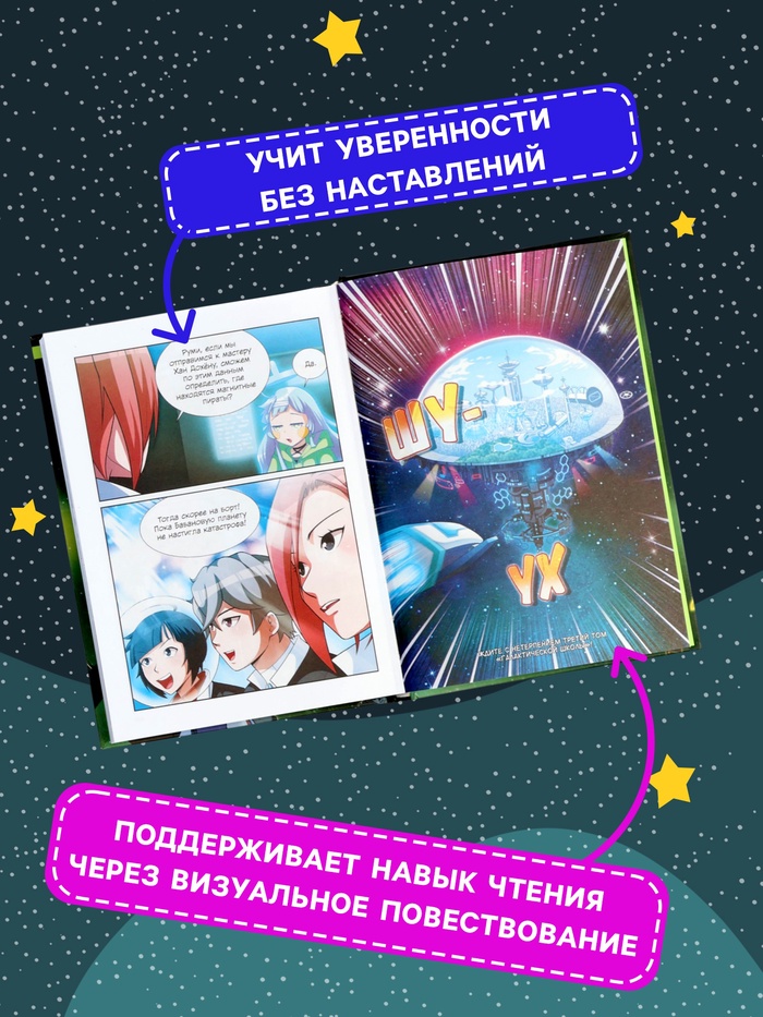 - Развивает интерес к чтению. Формат комикса снижает барьер для тех, кто считает книги «скучными».