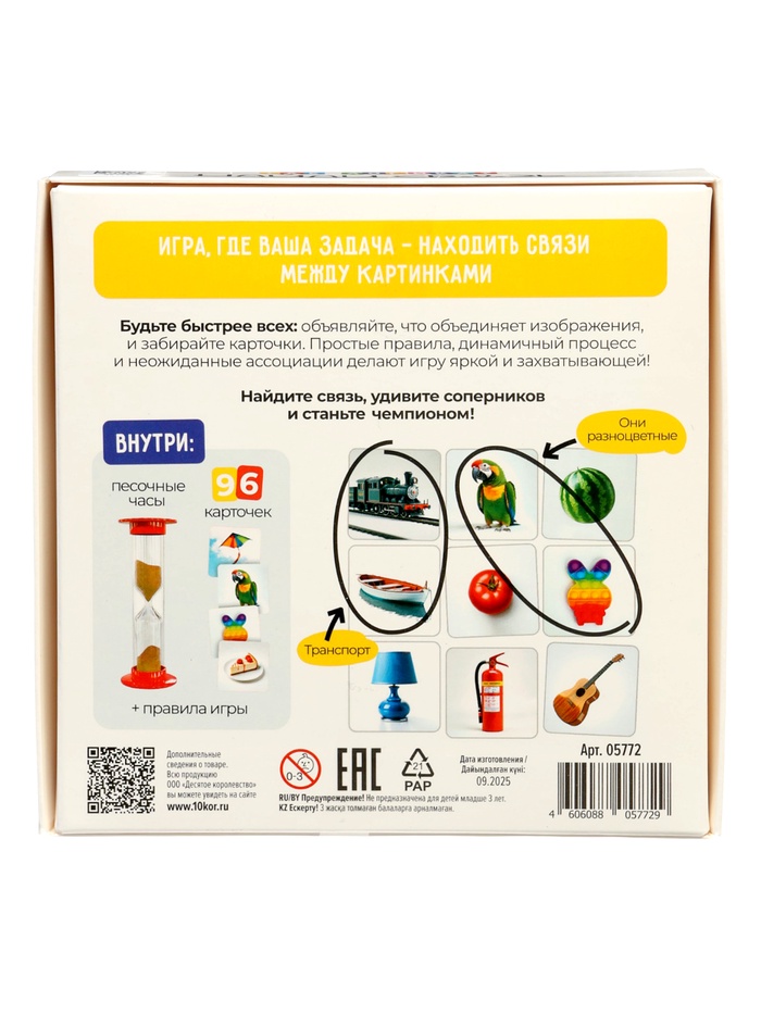 Настольная игра «Где логика? Найди связь» - увлекательная интеллектуальная игра, в которой участникам предстоит находить логические связи между изображениями. Игра развивает мышление, сообразительность и умение рассуждать, а также отлично подойдёт для весёлого и полезного досуга в компании.