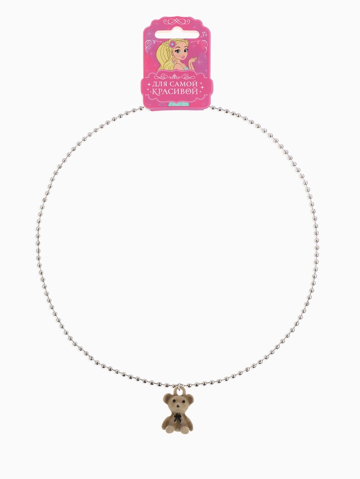 Кулон детский «Выбражулька. Мишка», 40 см, бежевый в серебре
