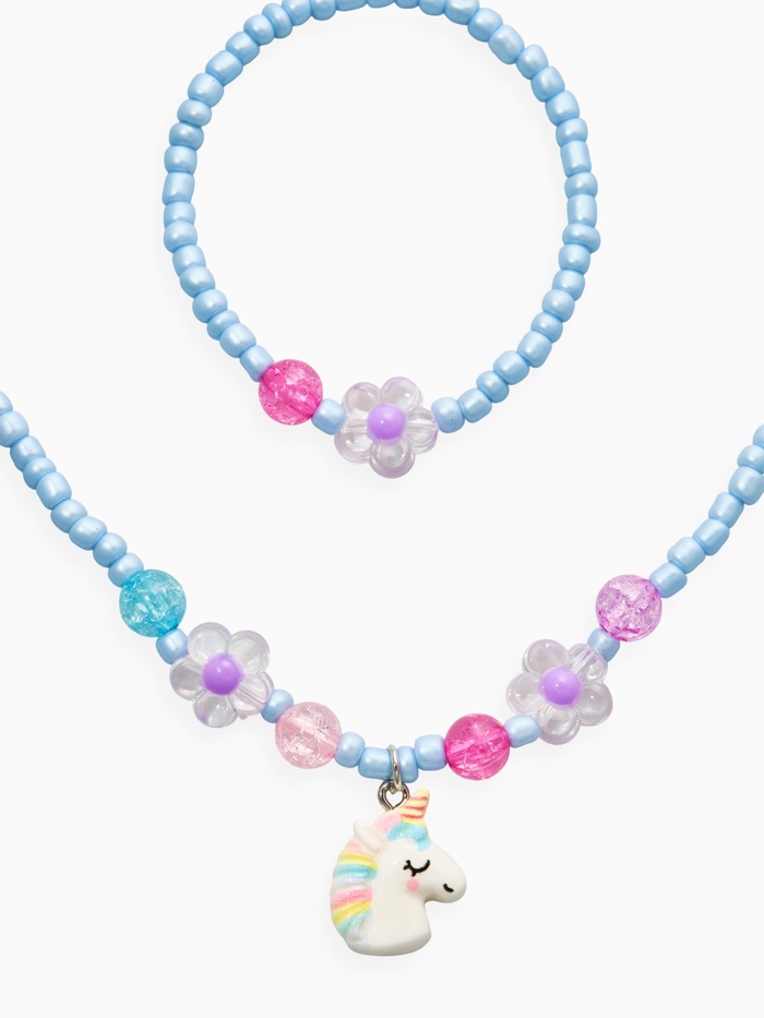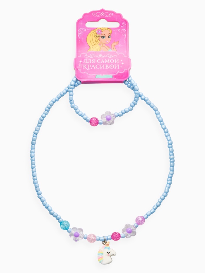 Набор детский «Выбражулька. Единорог, цветы», 2 предмета: бусы, браслет, голубой