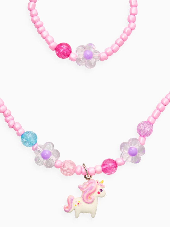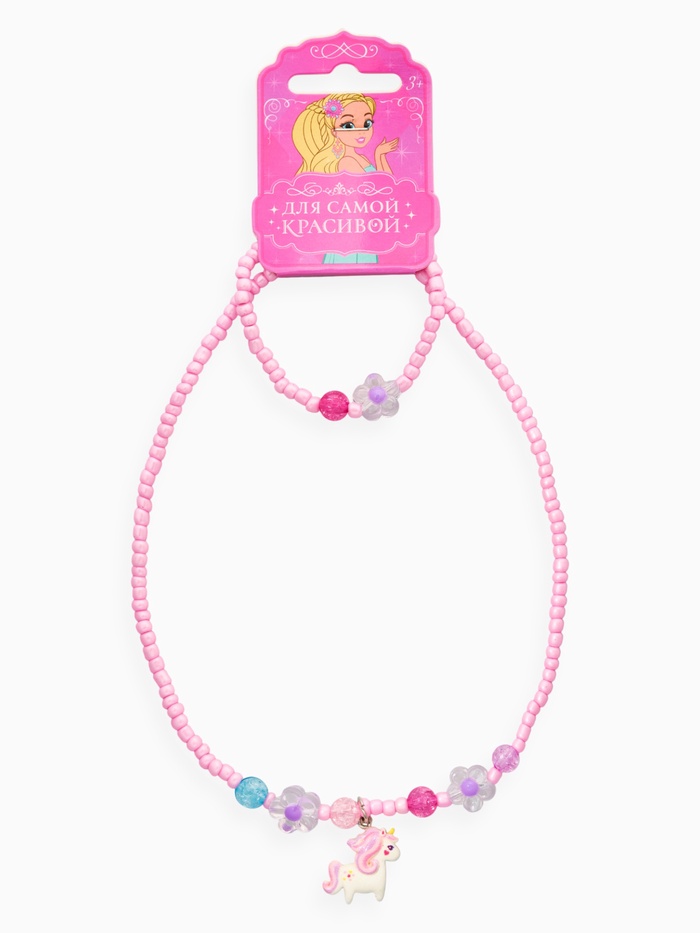 Создайте яркий и милый образ для маленькой модницы! Набор украшений для девочки, включающий бусы и браслет с изображением единорога и цветов (розовый) – это простое решение для дополнения детского гардероба. Такой комплект подчеркивает индивидуальность и дарит радость от ношения ярких аксессуаров.