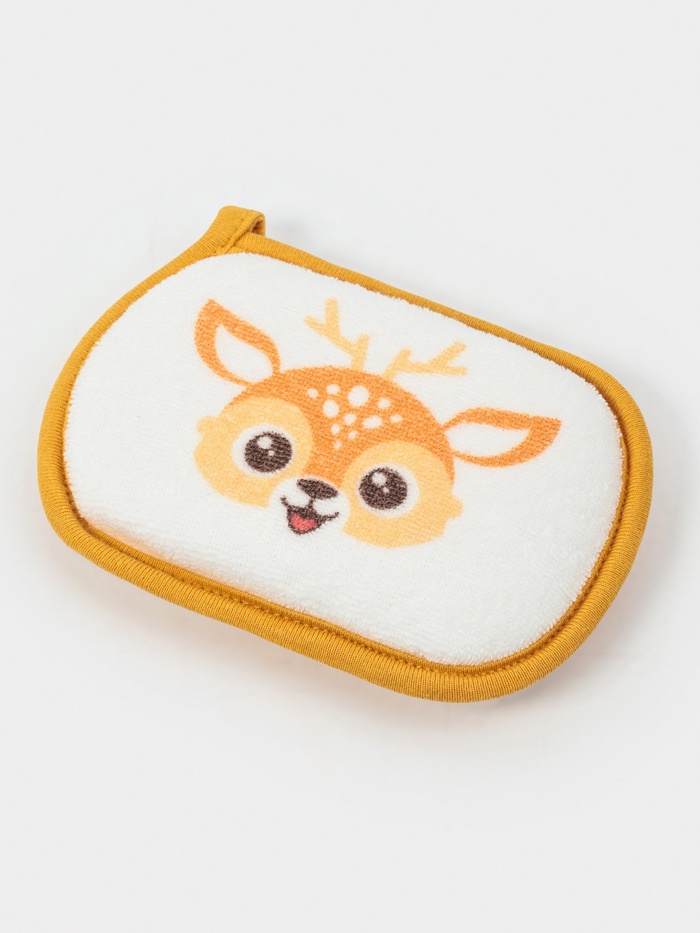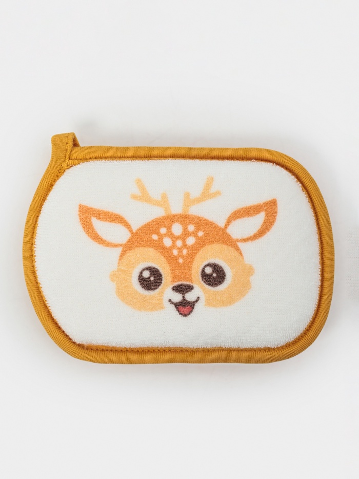 Тёплый коричневый оленёнок напоминает о лесной сказке. Эта детская губка приносит в ванную комнату уютную, природную историю. Мягкий хлопок натурального оттенка бережно очищает кожу, а образ доброго лесного жителя создаёт спокойную и доверительную атмосферу для вечернего купания.