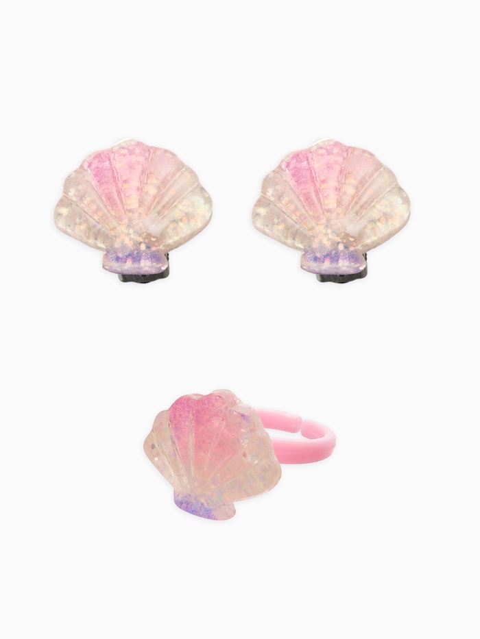 Яркий детский комплект, вдохновлённый морской тематикой, приглашает маленьких исследовательниц окунуться в волшебный мир подводных приключений. В набор вошли клипсы, кольцо и браслет, украшенные разноцветными ракушками и морскими мотивами — каждый аксессуар создаёт эффект живой игры красок и форм.