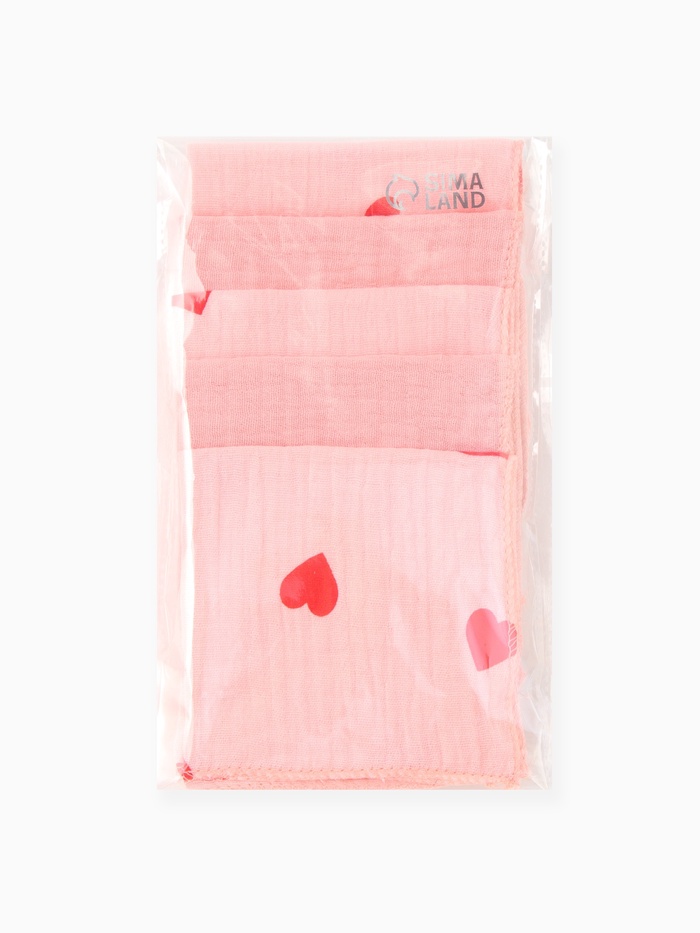 Платки носовые детские «Крошка Я» Pink Heart, 20×20 см, набор 6 шт., муслин, 100 % хлопок, розовые