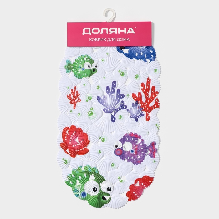 Коврик противоскользящий в ванну Доляна «Рыбка-шар», на присосках, 39×69 см
