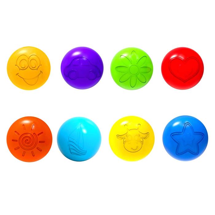 Яркие разноцветные шарики для сухого бассейна добавят в детские игры больше позитива, веселья и азарта! На каждом элементе прорисована картинка: машинка, жирафик, солнышко, цветочек, сердечко, кораблик, улыбка или звёздочка. Шарики выполнены в сочных глянцевых красках, они отлично развивают у малышей восприятие цвета.