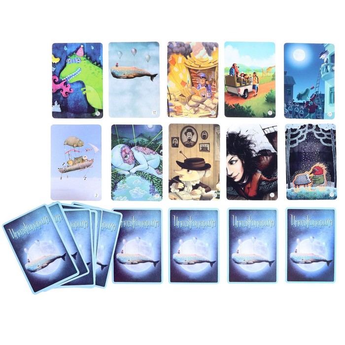 В ваших руках находятся шесть карточек с необычными изображениями. Включайте свою фантазию, придумывайте к ним ассоциации и озвучивайте их остальным игрокам. А они уже подберут свою карту, которая лучше всего подходит к описанию. Участники должны решить, какая же из представленных картинок принадлежит вам, и проголосовать за неё. Не сочиняйте слишком простые или сложные ассоциации, ведь догадаться должны не все. Получайте призовые очки и передвигайте фишку летающего слона по облакам игрового поля.