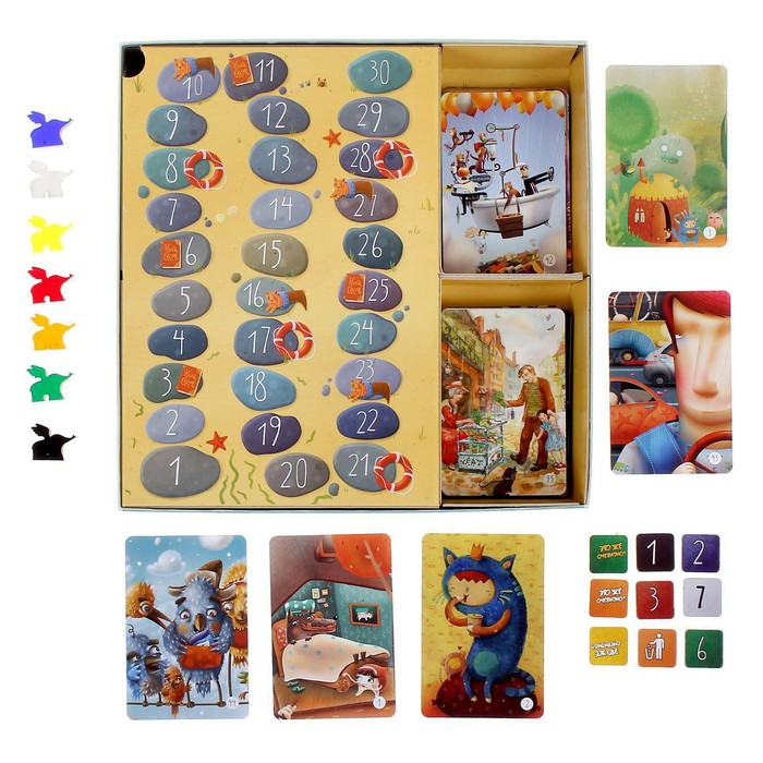 • 7 цветных игровых фишек в виде слонов,