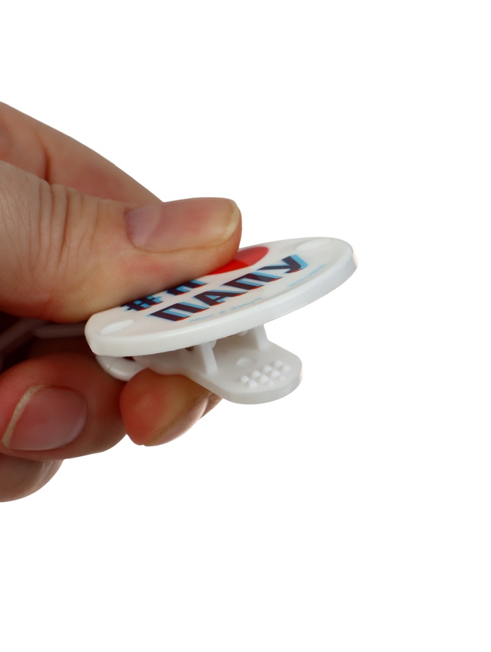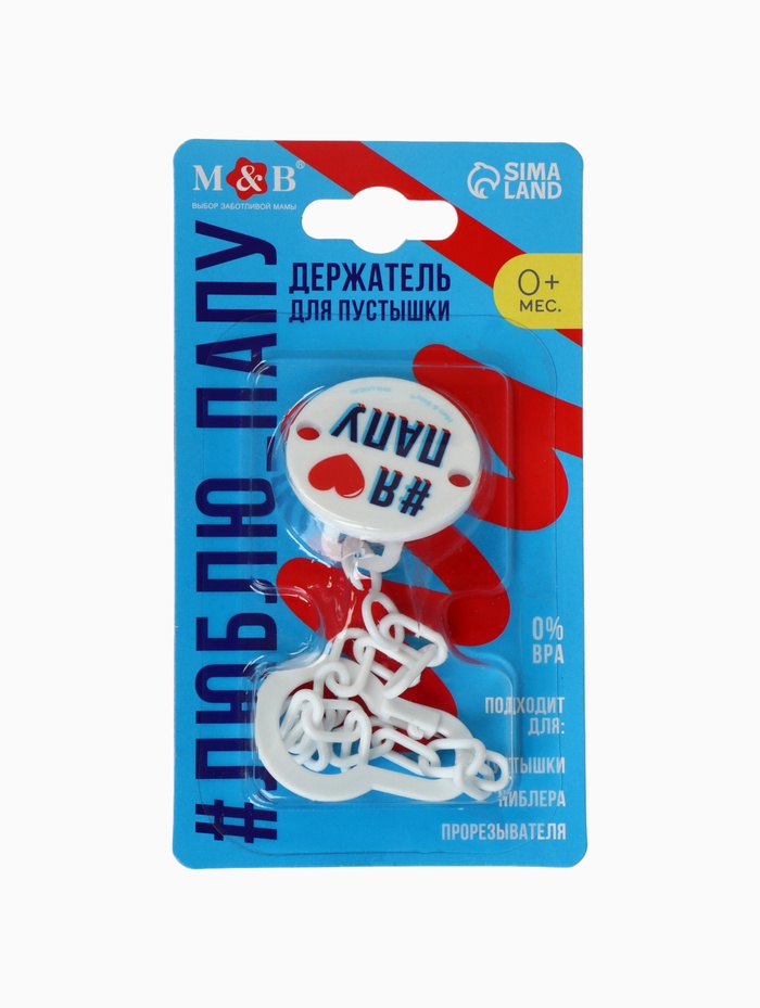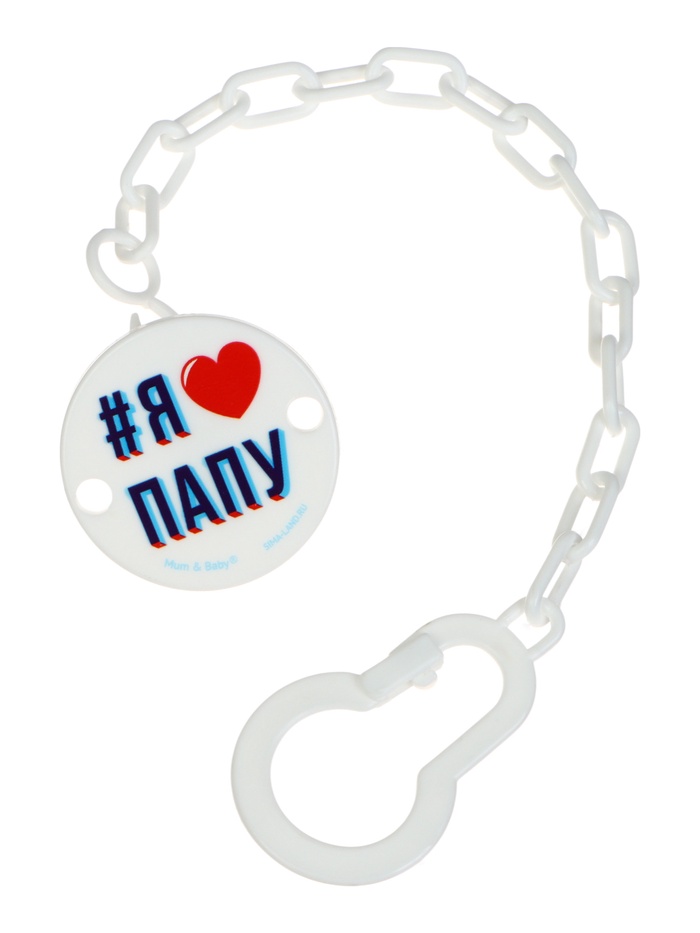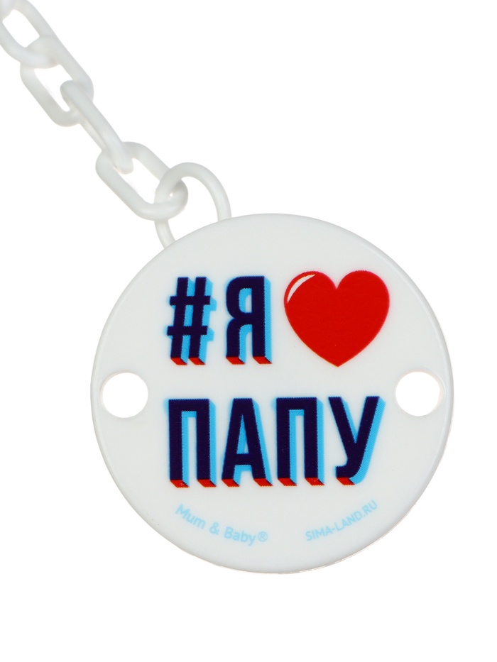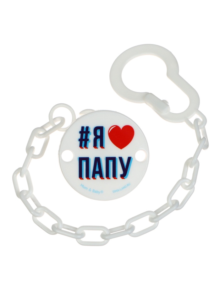 Держатель для соски - пустышки «Я люблю папу», на цепочке, белый