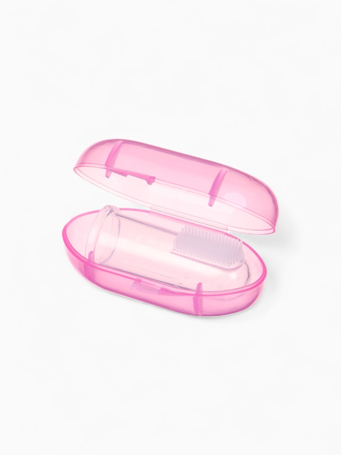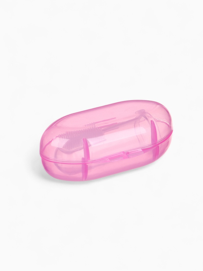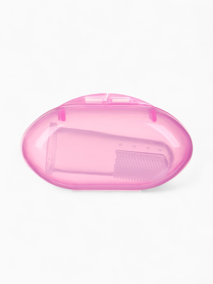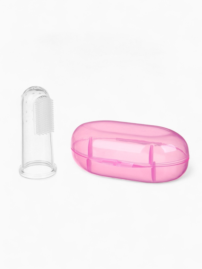 Прорезыватель - массажер Крошка Я 3 в 1, детский в контейнере, на палец, силиконовый от 3 мес., розовый