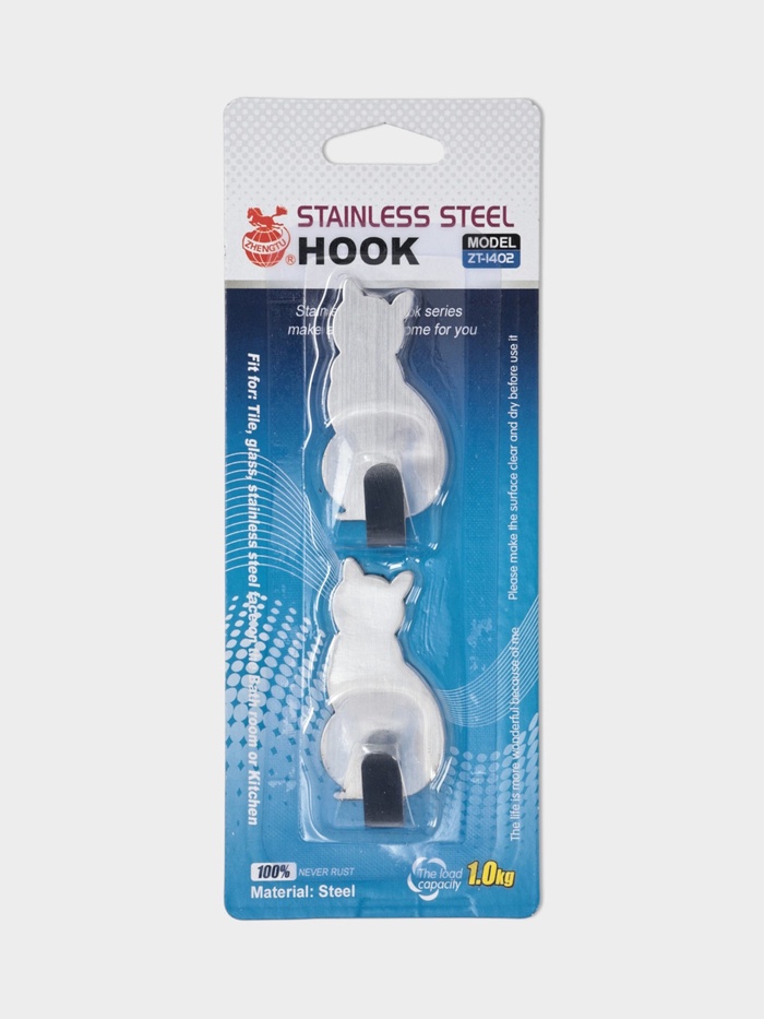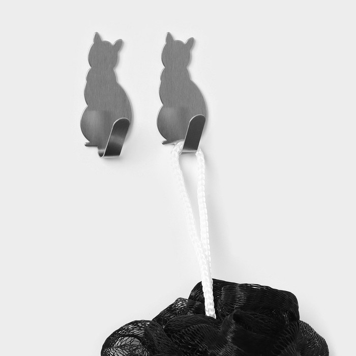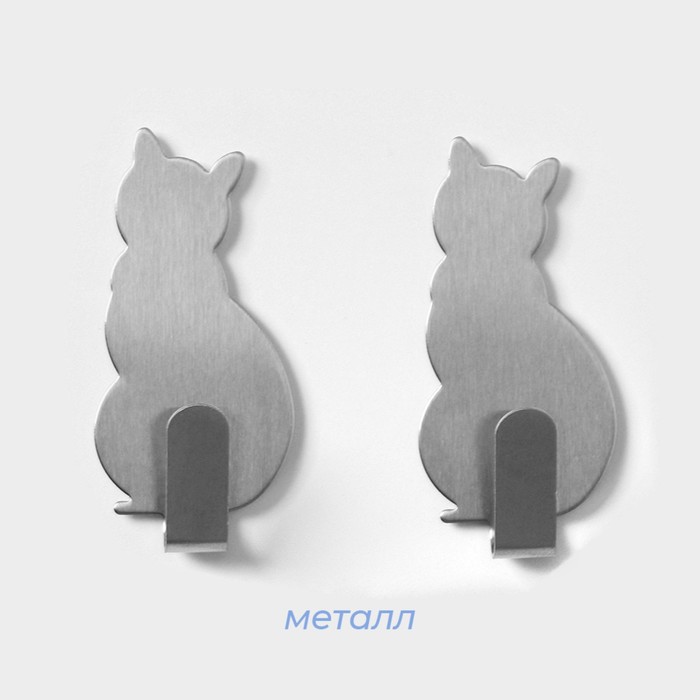 Крючки самоклеящиеся SAVANNA «Кошка», 2 шт., металл, 5×2.4×1.5 см, хромированные