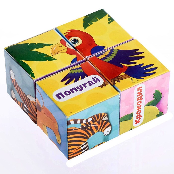 Кубики картонные «Зверята», 4 шт.