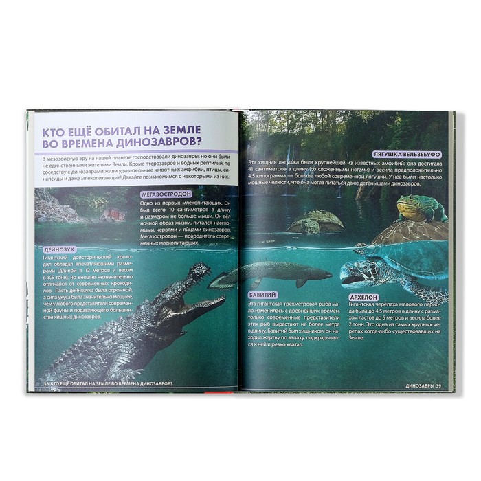 - Твёрдый переплёт книги позволяет брать её с собой, чтобы изучать мир динозавров вместе с друзьями и близкими.