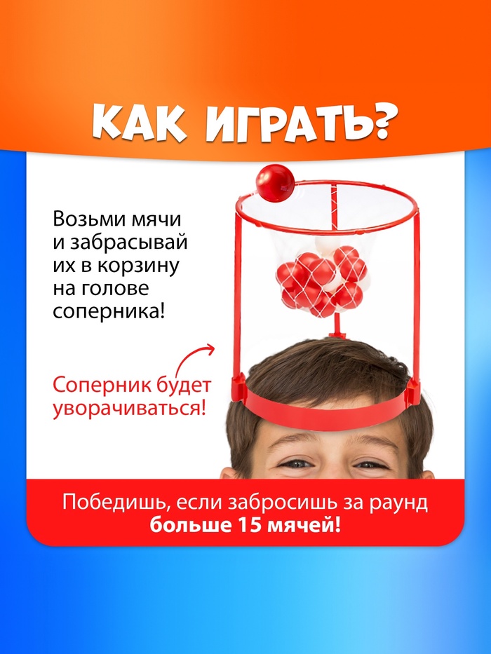 Спортивная игра «Баскетбол на голове», от 2 игроков, 3+