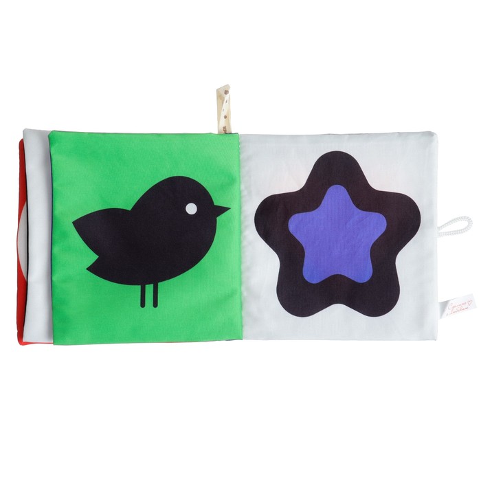 - Книжка выполнена из мягкого текстиля с шуршащими элементами для тактильного и звукового развлечения.