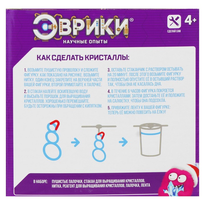 С набором «Снеговик» ребёнок увидит, как растут кристаллы! Этот процесс не просто интересен — он завораживает, а готовый результат станет настоящим украшением детской комнаты.