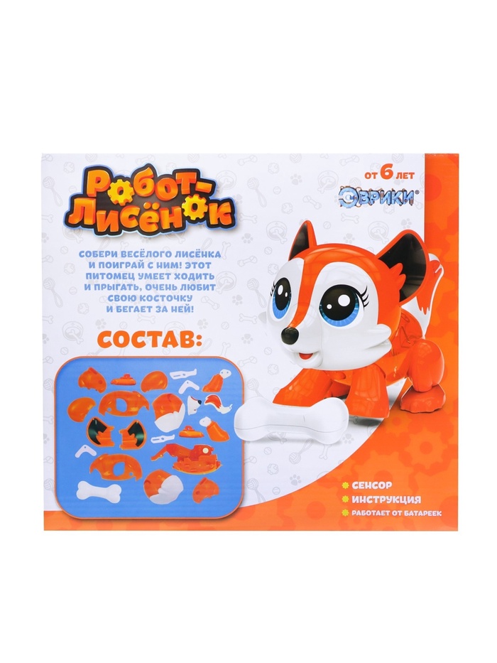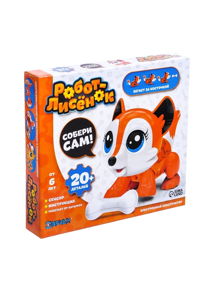 Электронный конструктор «Робот-лисёнок», интерактивный, сенсорный, на батарейках, 20 деталей