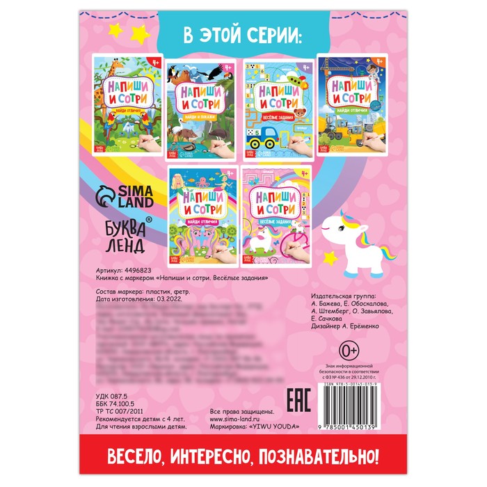 Книжка с маркером «Весёлые задания» — это увлекательный обучающий сборник для детей от 4 лет, который помогает развивать мелкую моторику, внимание, логику и творческое мышление. На 12 многоразовых страницах ребёнок сможет выполнять задания, стирать их и начинать заново.
