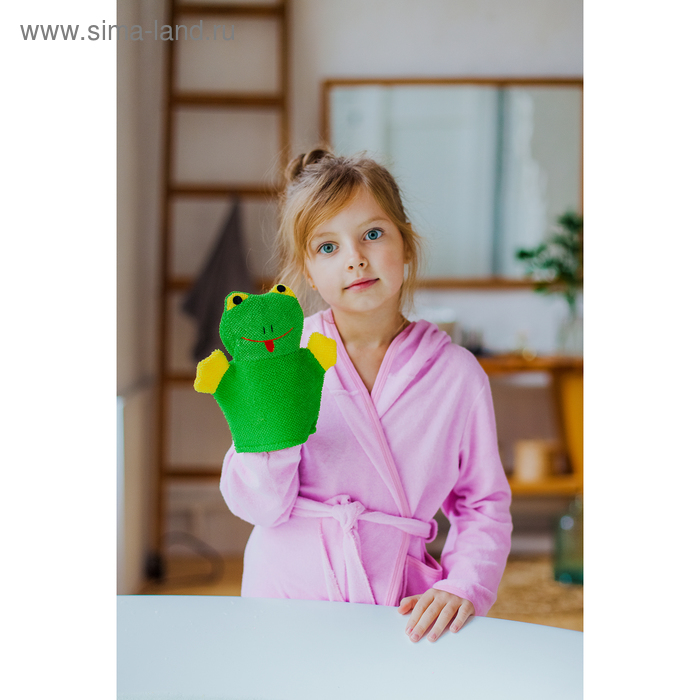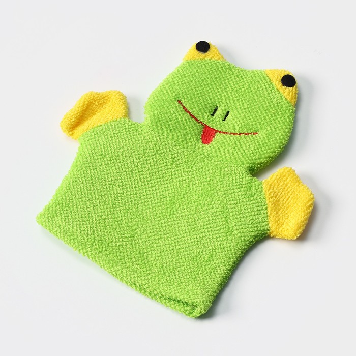 Мочалка варежка детская Доляна «Лягушонок», для купания, 20 см
