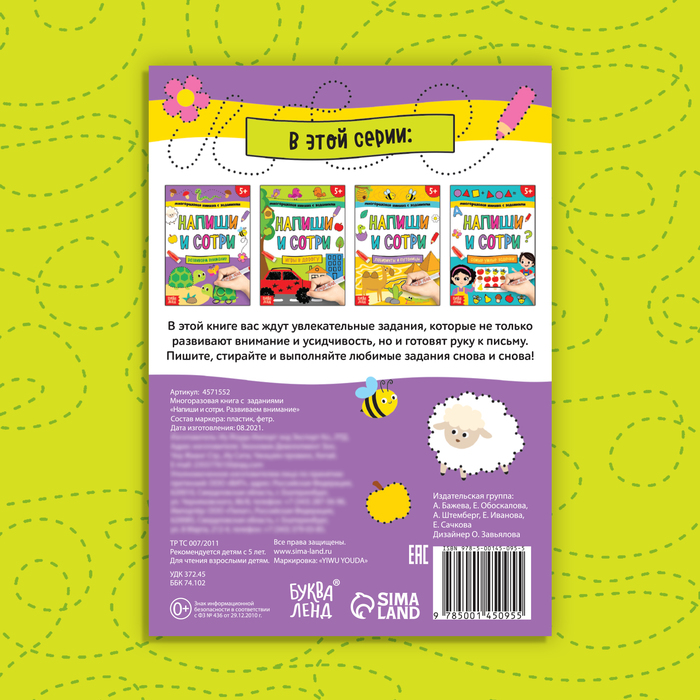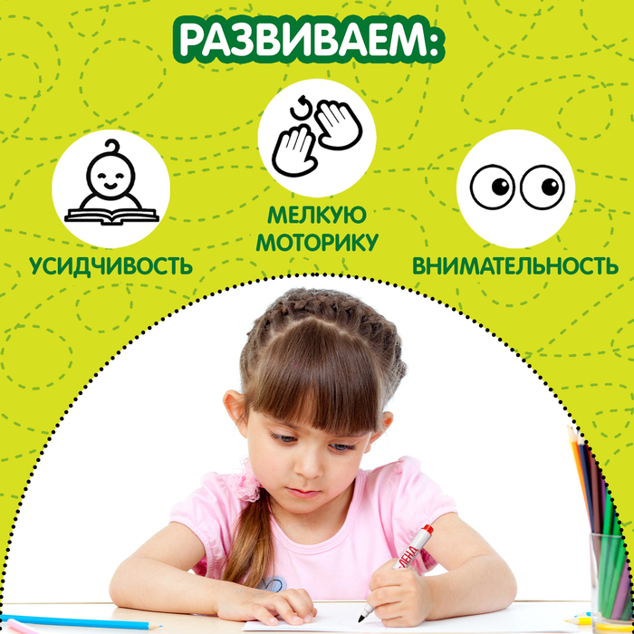 Книга с маркером «Напиши и сотри. Развиваем внимание», 12 стр., многоразовая