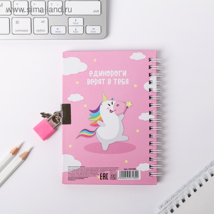 Анкета на замочке, в твердой обложке А6, 40 листов «Для самых волшебных»