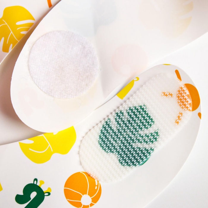 Изделие выполнено из мягкого материала, имеет безопасные края. Приспособление фиксируется за шеей с помощью застёжки.