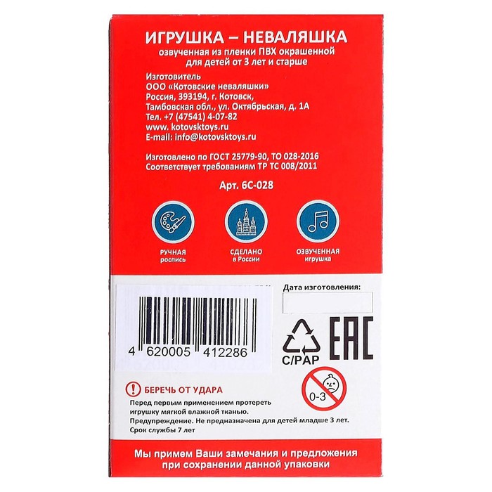 Неваляшка в художественной упаковке с рисунком