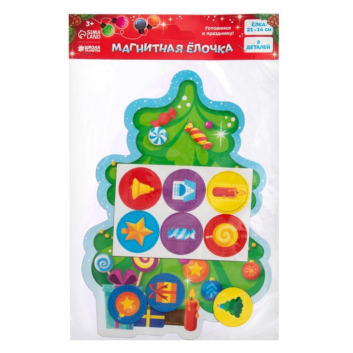 Поместите ёлочку на холодильник или играйте на столе. Попросите малыша украсить ёлку, посчитать игрушки. Используйте магнитные элементы в сюжетно-ролевых играх.