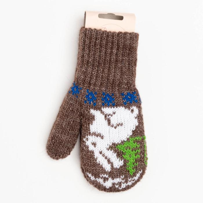Варежки двойные детские, тёмно-коричневые, размер 10 (0-3 года)