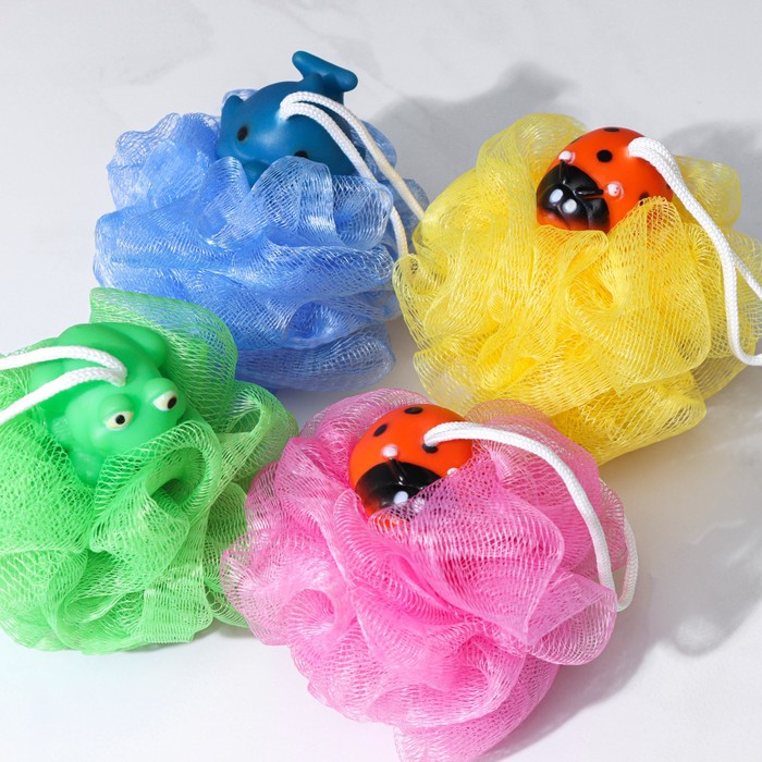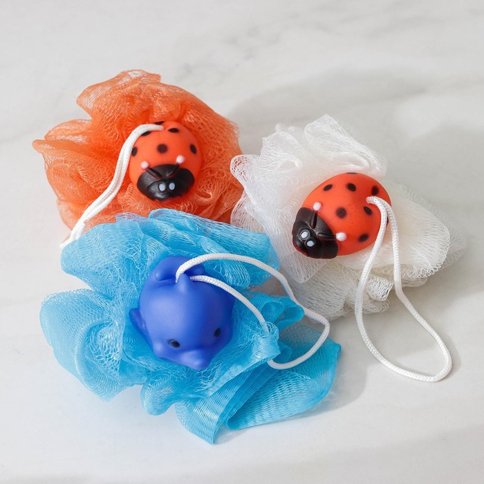 - Забавный дизайн: милые зверушки на мочалке делают процесс купания увлекательным и веселым, превращая его в игру.
