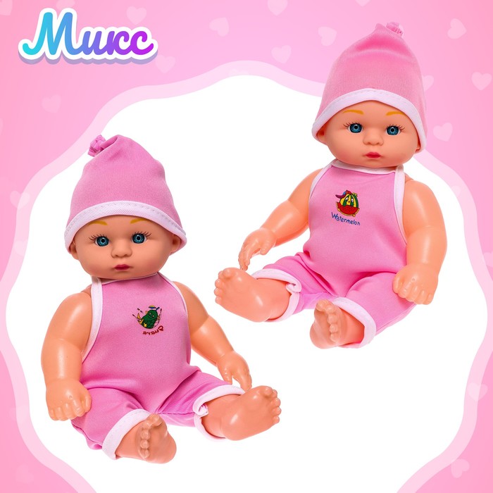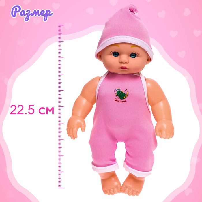 Пупс обязательно понравится ребёнку. Для работы игрушки нужны 3 батарейки типа LR44 (V13GA, AG13, LR1154), которые входят в комплект. Высота пупса: 22,5 см. Одежда снимается.